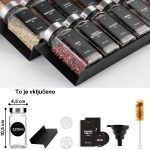 Ne glede na to, ali pri svoji kuhi uporabljate le nekaj svojih najljubših začimb, ali pa radi mešate in kombinirate različne vrste začimb, boste tu našli rešitev zase! Vse svoje začimbe shranite v 24 ločenih kozarčkov. Kozarčki so izdelani iz prozornega stekla, zato vam ni treba ugibati, kaj je v njih, niti preverjati, ali vam jih je morda že zmanjkalo.