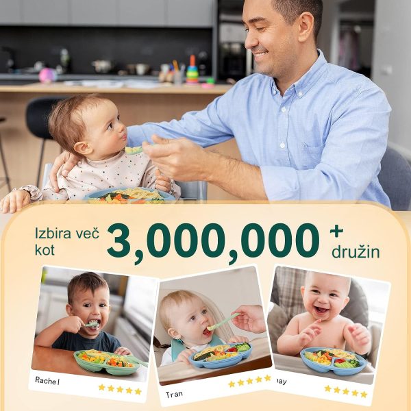 - 100% VAREN SILIKON – Naši 100-odstotno varni silikonski krožniki ne vsebujejo nobenih polnil ali škodljivih materialov, ki bi lahko prišli v otrokovo hrano. Nelomljiv silikon je idealen material za jedilni pribor za malčke – nič več razpokanih krožnikov in nič več zapravljanja denarja za njihovo zamenjavo! Poleg tega je silikon varen za pomivalni stroj in mikrovalovno pečico.