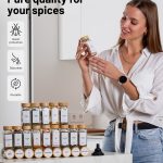 ✔️ ZA OPTIMALNO ORGANIZACIJO – Z 12 steklenimi kozarčki za začimbe ponosno razstavite svoje začimbe in zelišča na eleganten in skladen način. Kozarčke lahko postavite tudi na naše 2-delno stojalo za začimbe.