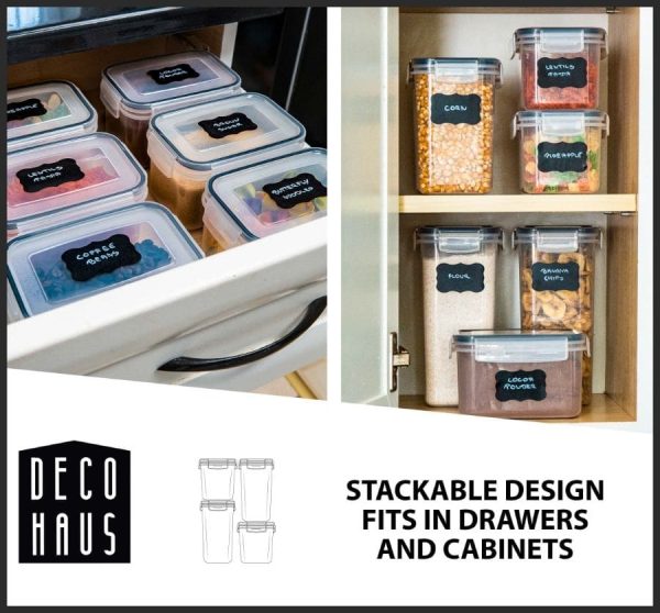 Komplet 24 posod Posode za shranjevanje Deco haus – Kuhinjske posode za shranjevanje hrane za večkratno uporabo z nepredušnimi pokrovi – Primerne