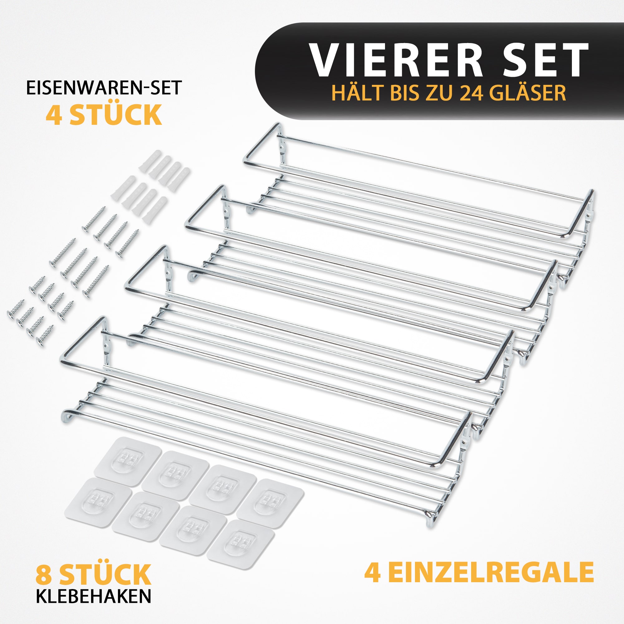 Komplet 4 kovinskih polic za začimbe Deco Haus – kuhinjski regali, vložki za omare, stojalo za začimbe – združljiv z kozarčki za začimbe – montaža z lepilom ali vijaki – srebrna 29 x 6,35 x 5 cm srebrne barve
