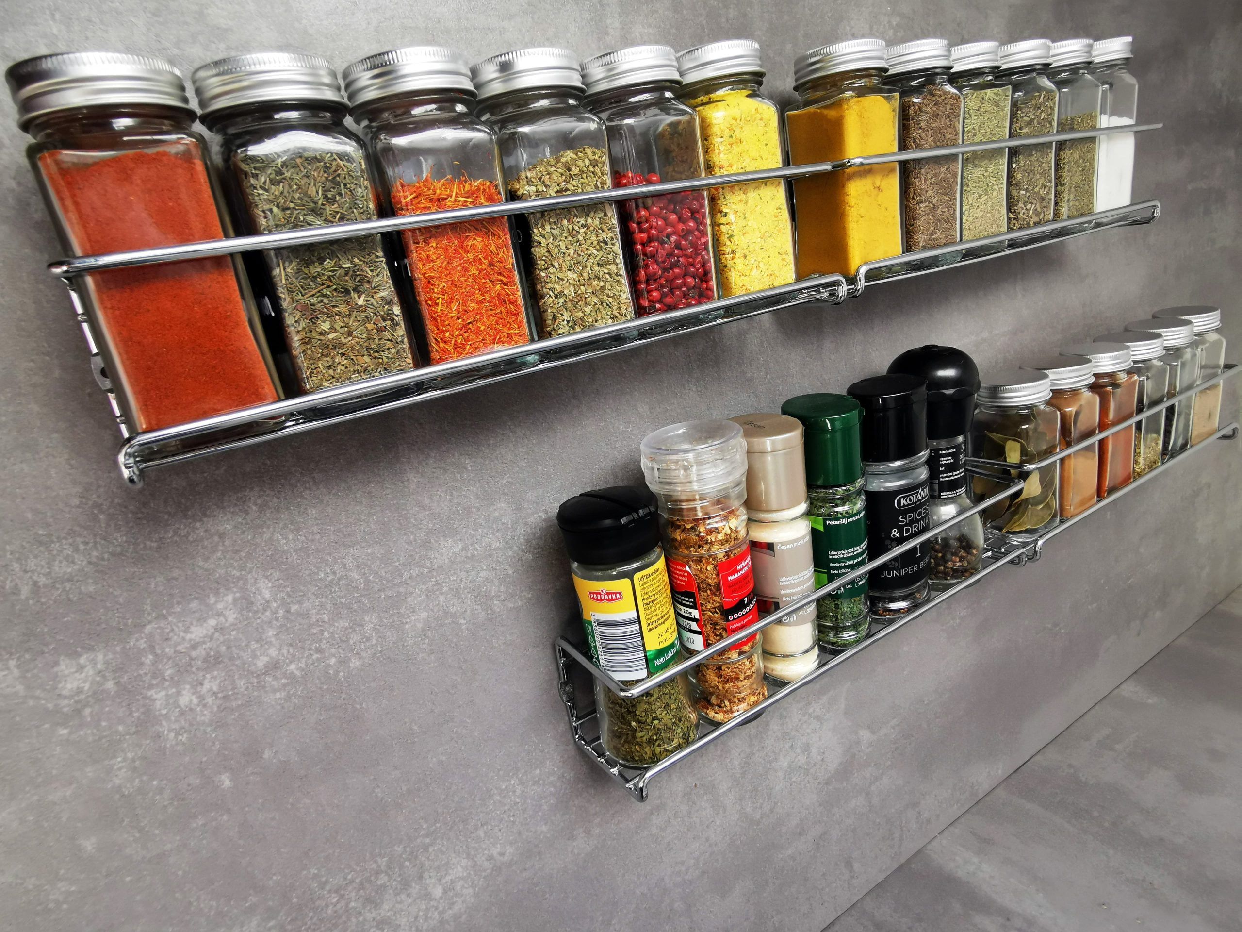 Naša stojala za začimbe so izdelana iz trpežne kovine in zagotavljajo prostor za vse vaše najljubše začimbe! Stojalo je dolgo 29 cm, visoko 7 cm in globoko 7 cm (od tega lahko uporabite 5 cm), zato je primerno za vse standardne posodice za začimbe, da so organizirane in na dosegu roke.