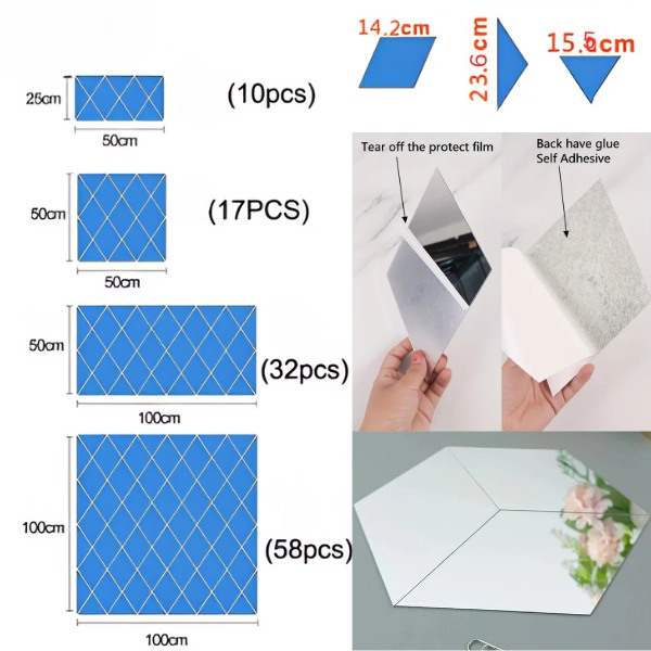 Material: Akrilno ogledalo z zaščitno folijo (pred uporabo odstranite)