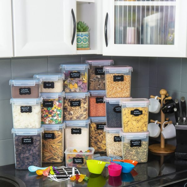 Naš komplet je idealen za shranjevanje prigrizkov, kot so sladkarije, granola, oreščki in piškoti, osnovnih živil, kot je moka, in živil za zajtrk, kot je kava. Shranjevanje v teh prozornih posodah je enostavno, živila pa bodo dobro organizirana in vedno pri roki. Nikoli več se vam ne bo zgodilo, da bi pozabili, kam ste nekaj shranili!