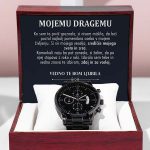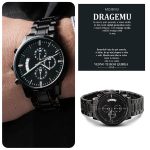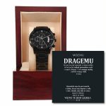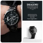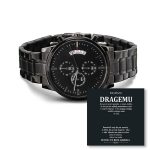Ta črna ura s kronografom, ki je prilagojeno darilo in je odporna na stalno uporabo, je popolno darilo za vse posebne moške v vašem življenju. To je vsestransko darilo za ženina, spominek na obletnico ali trajno darilo za očetovski dan – to je vsestranski kos, ki bo zagotovo ogrel srca in ustvaril nasmeh. Ima tri številčnice, funkcijo koledarja in luksuzni kazalec v posodi, ki je odporna na praske in vodo. Izdelan je iz visokokakovostnega nerjavnega jekla in ima bakreno številčnico.