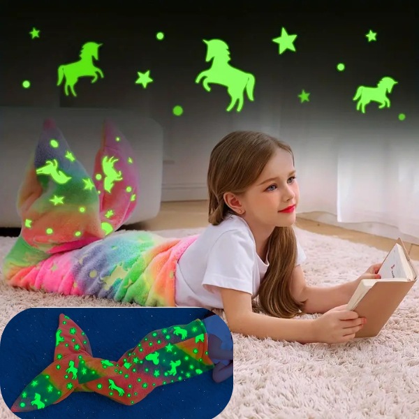 Odejica MERMAIDREAM v sveti v temi ter zagotavlja pomirjujočo svetlobo, ki ublaži nočne strahove. Preprosto jo za 20 minut izpostavite dnevni svetlobi in nežno bo svetila vso noč. Izberite vzorec z repom morskega psa ali morske deklice za dodatno čarobnost med spanjem vašega otroka.