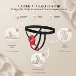 Nastavljivi trakovi se varno prilegajo vsaki telesni obliki, tako da se lahko prosto gibate – jahate, upogibate ali raziskujete nove kote – brez izgube stika. Idealen za pare ali samostojno igro.