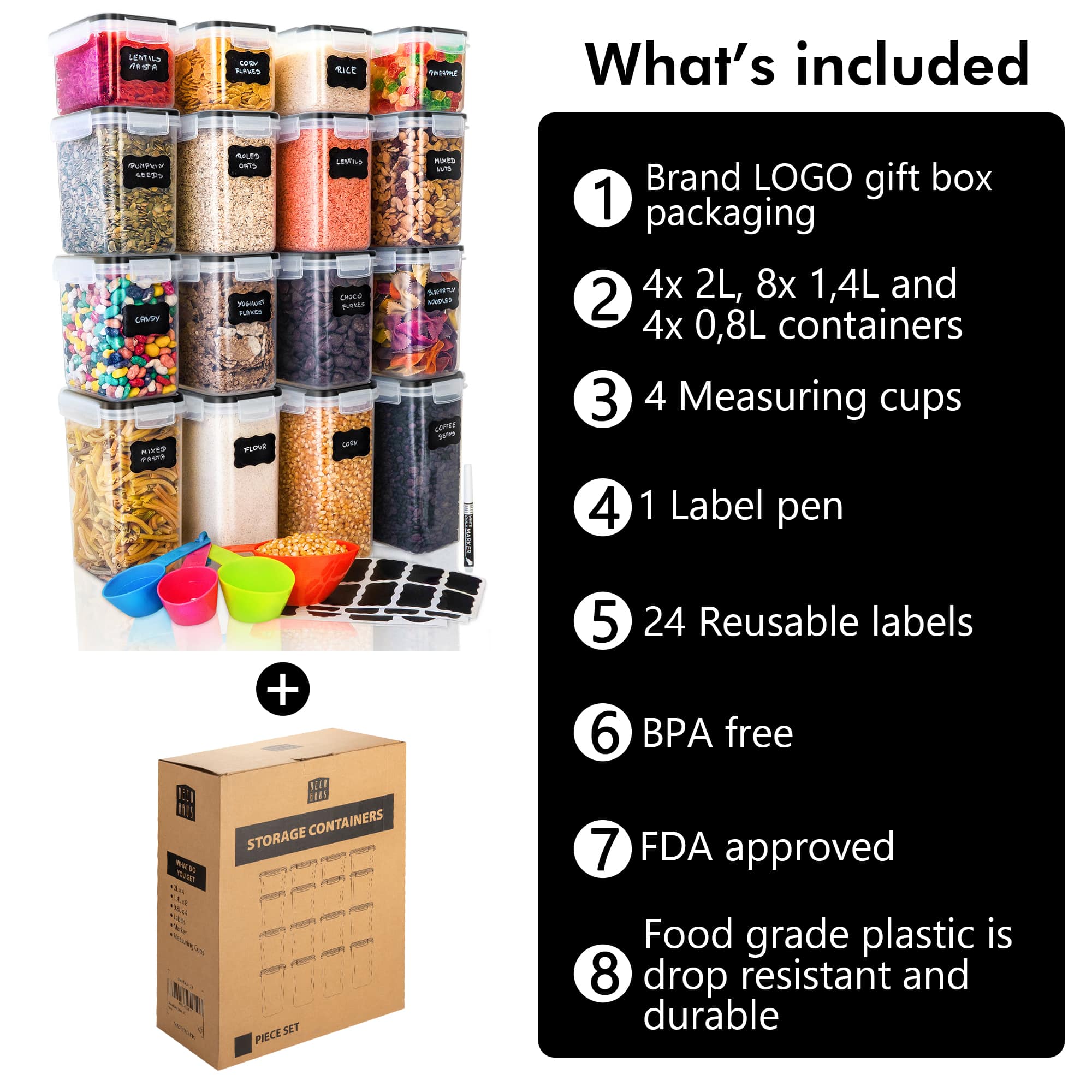 ✅ VEČJA VREDNOST ZA VAŠ DENAR – Denar, ki ga boste porabili za te posode, bo res dobro porabljen denar. Vsak komplet dobite v čudoviti škatli s pisalom, praznimi nalepkami in merilnimi skodelicami.