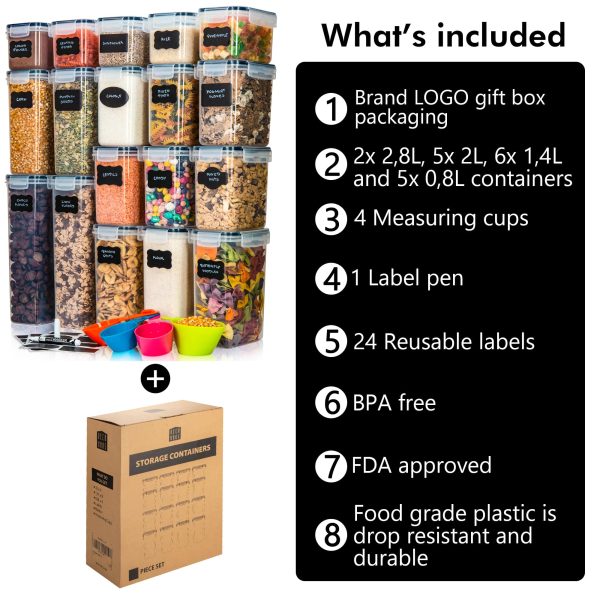 ✅ VEČJA VREDNOST ZA VAŠ DENAR – Denar, ki ga boste porabili za te posode, bo res dobro porabljen denar. Vsak komplet dobite v čudoviti škatli s pisalom, praznimi nalepkami in merilnimi skodelicami.