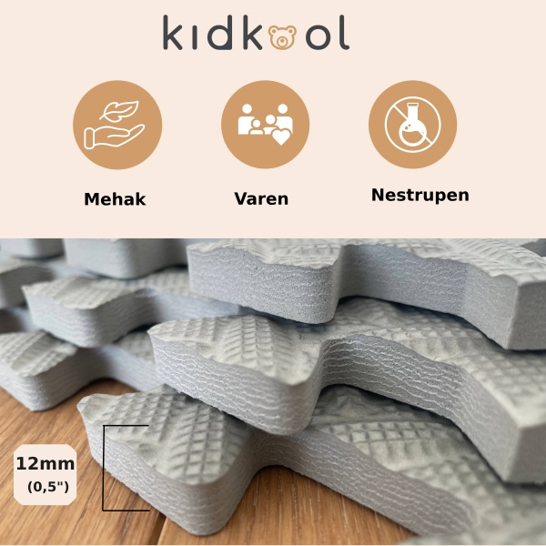 Mehka igralna podloga kidkool je odlična rešitev za ustvarjanje optimalnega, varnega, učnega in igralnega prostora za vašega malčka.