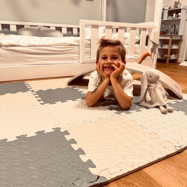 Podloga je v celoti izdelana iz EVA pene, material je mehak in prijeten na dotik ter varuje vsak korak vašega otroka.