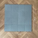 Penaste plošče, velikosti 30 × 30 centimetrov. Komplet sestavlja 16 delov (in vključuje še 2 dodatni, brezplačni, plošči) Skupna velikost podloge meri in pokrije 2,5 kvadratnih metrov. Uporabljajo se lahko v različnih prostorih in celo zunaj.
