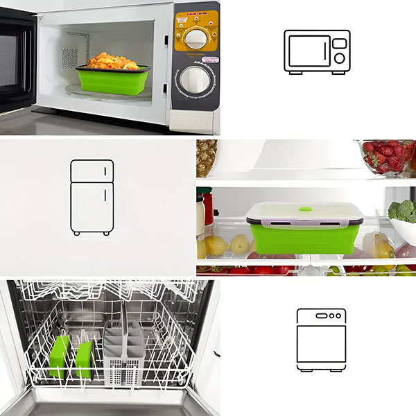 Te posode so narejene iz visokokakovostnega silikona brez vsebnosti BPA in zagotavljajo, da bo vaša hrana ostala sveža in brez škodljivih kemikalij.