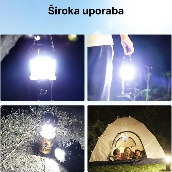 Ta neverjetna lanterna + svetilka je primerna za številne aktivnosti. Uporabljajte jo med ribolovom, pohodništvom, lovom ali pa se preprosto sprostite na svojem vrtu. Stabilen ročaj svetilke vam omogoča, da jo obesite kamorkoli, saj zagotavlja osvetlitev brez uporabe rok. Njena kompaktna in lahka zasnova zagotavlja, da jo je enostavno prenašati in shranjevati, zato je popolna za vse vaše pustolovščine na prostem in v zaprtih prostorih.